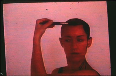 Video-installatie op drie schermen, waarin de New-Yorkse kunstenaresse Ellen Cantor bestaand filmmateriaal uit de massamedia en mainstream-film montee -