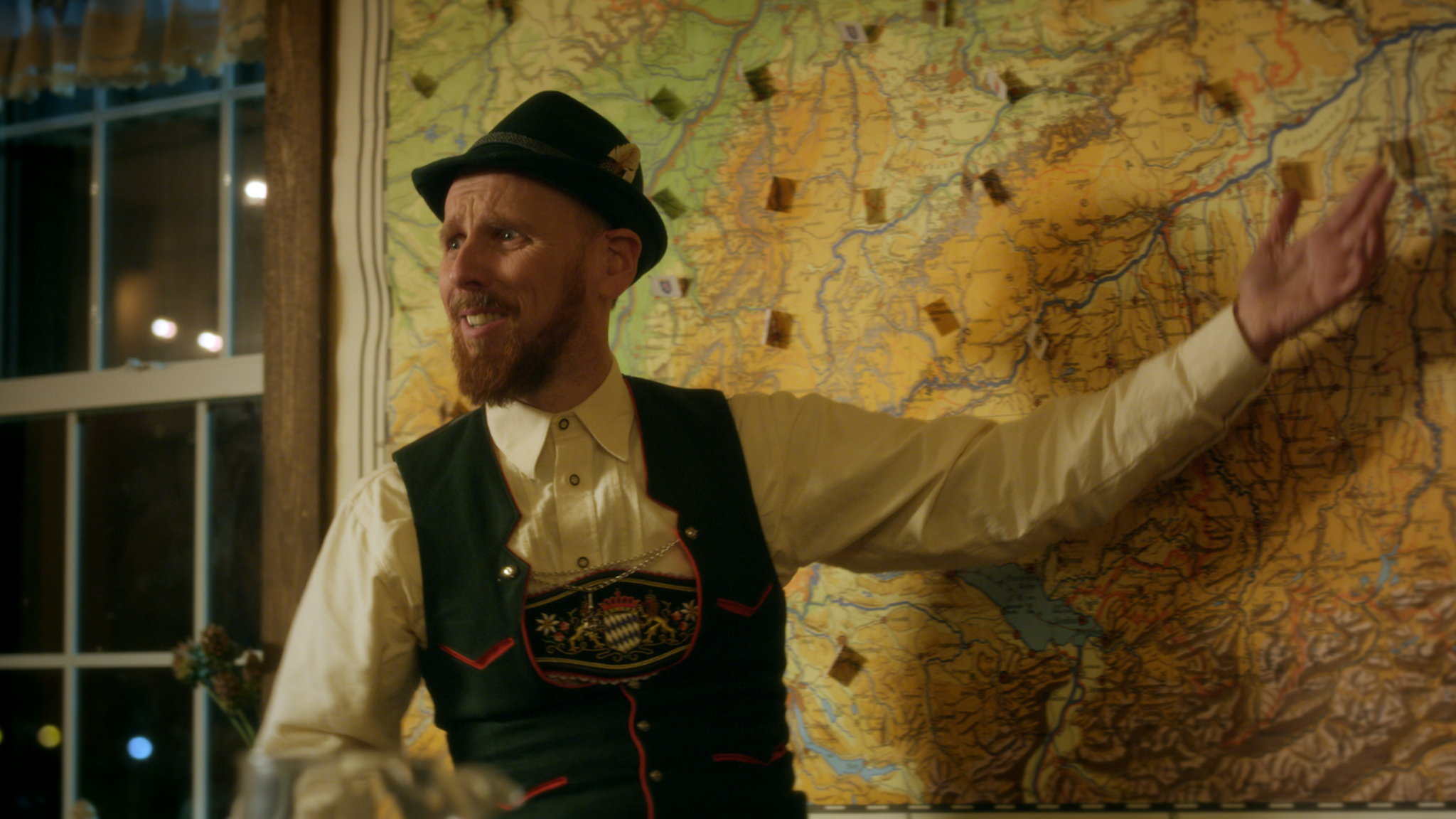Gortdroge, gelaagde komedie over Trumps racistische Amerika, waarin een Duitse, bipolaire worstenmaker een restaurant wil openen in een Amerikaans geh -