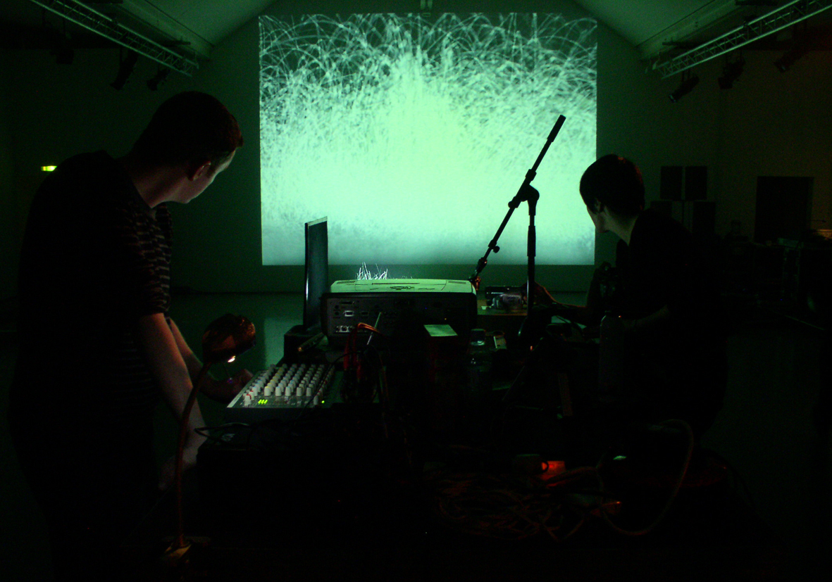Bewegende deeltjes zwermen door het beeld, vergezeld door een exact matchende soundtrack. Of is het andersom: de soundtrack schept het beeld? -