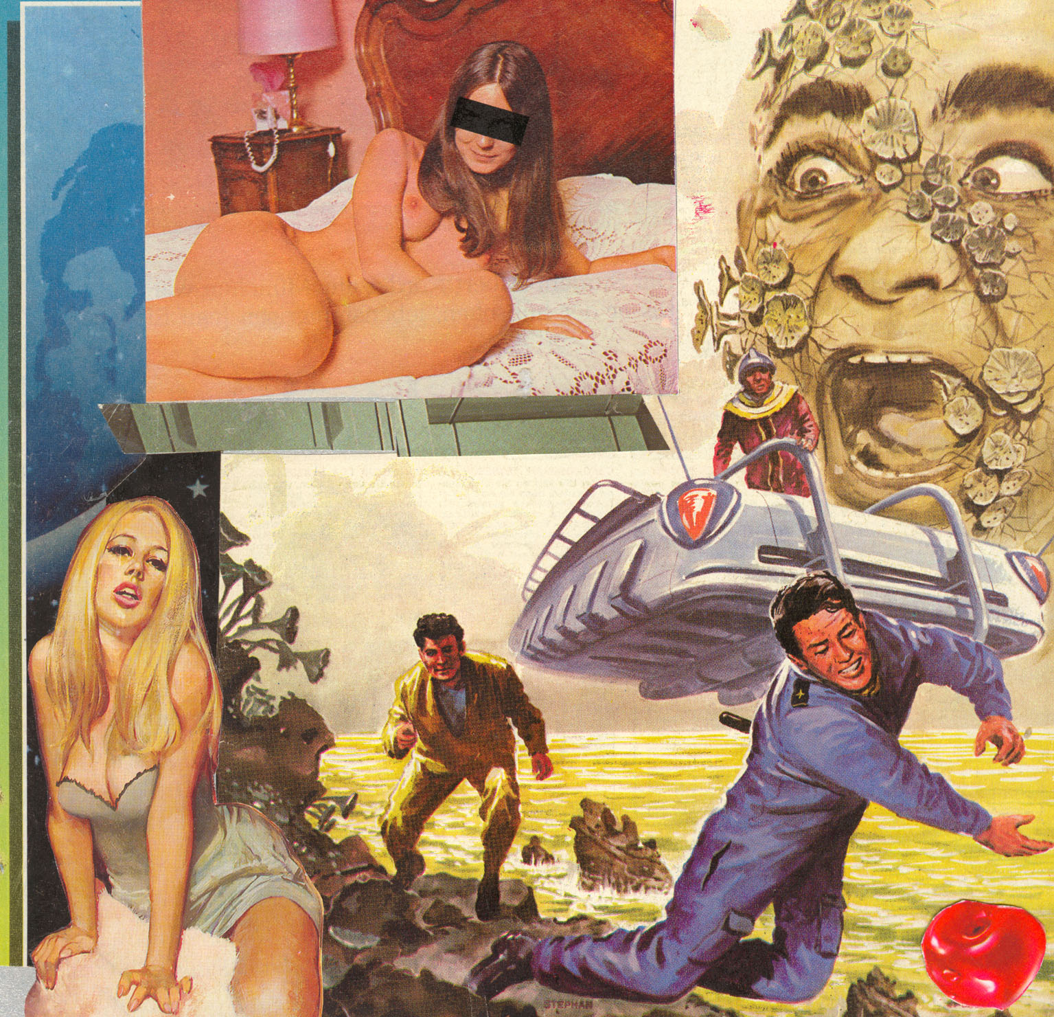Een jubelende buiteling van archiefmateriaal rond een man in onbekend buitenaards gebied. -