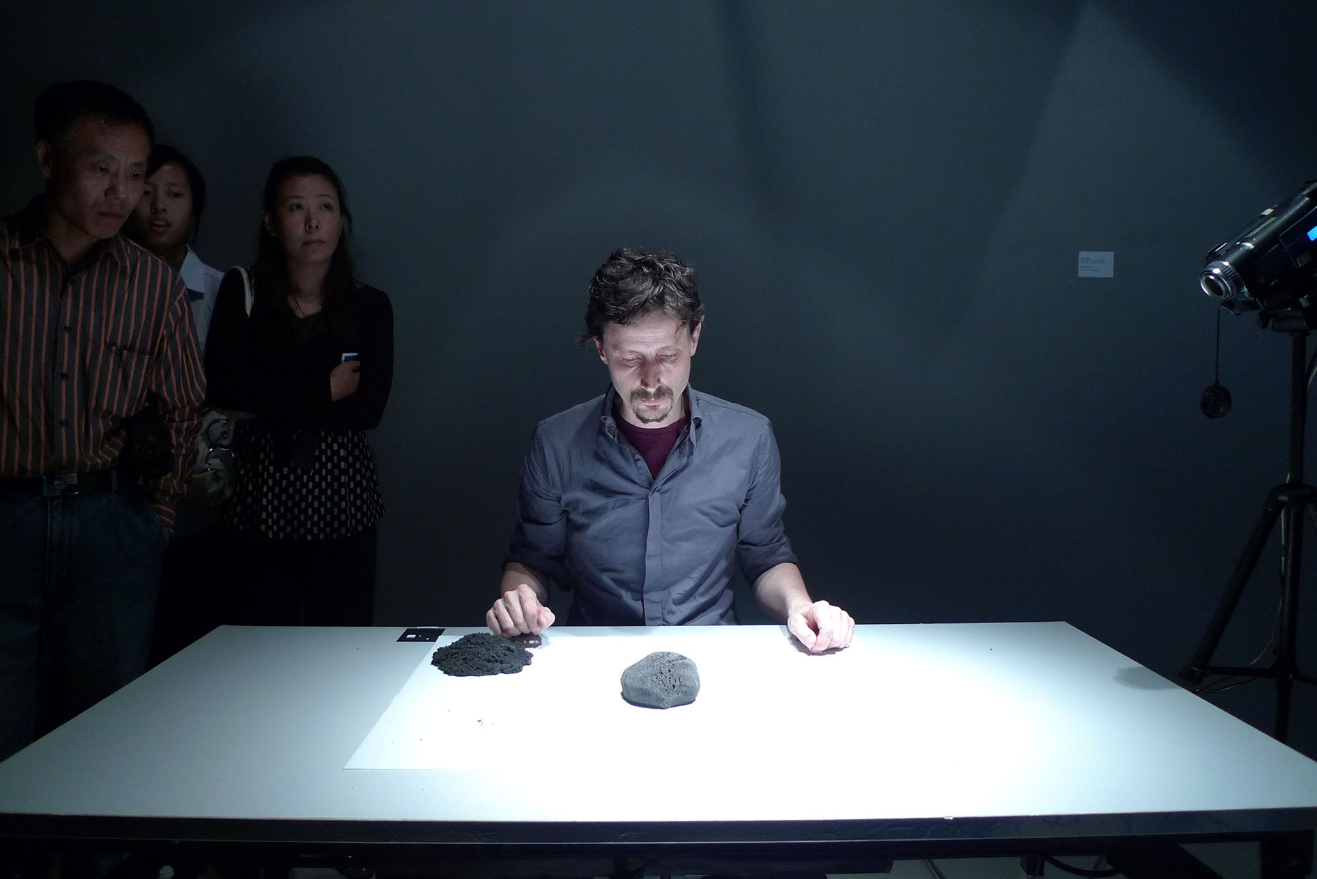 In deze performance maakt een man vormeloze hoopjes met een kaviaarachtige ‘slowmotionsubstantie’. Maire distilleert de essenties uit het medium cinem -