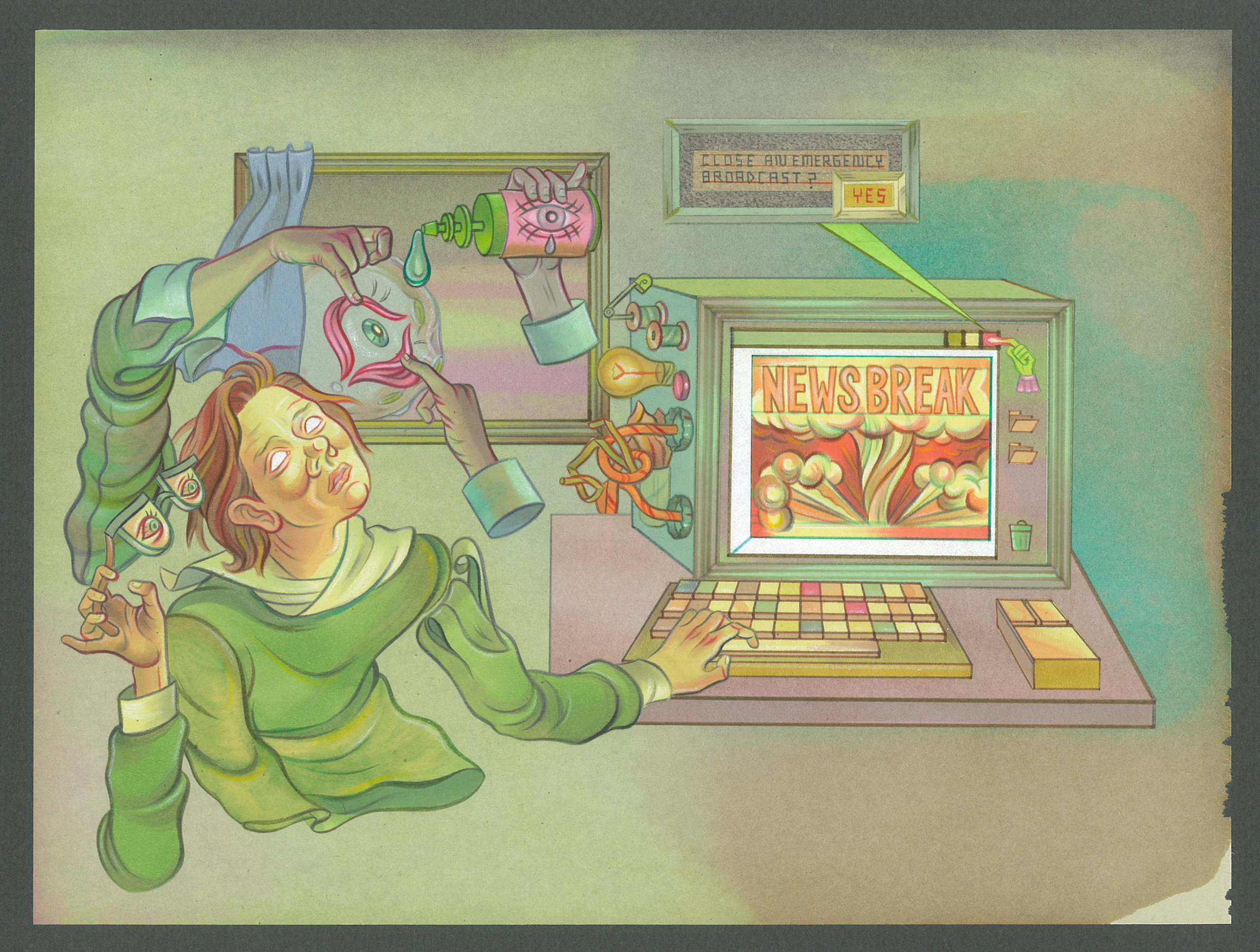 Microscopisch landschap, opgebouwd uit foto- en videocollages, geïnspireerd door wetenschappelijke documentaires in de geest van Jean Painlevé. -
