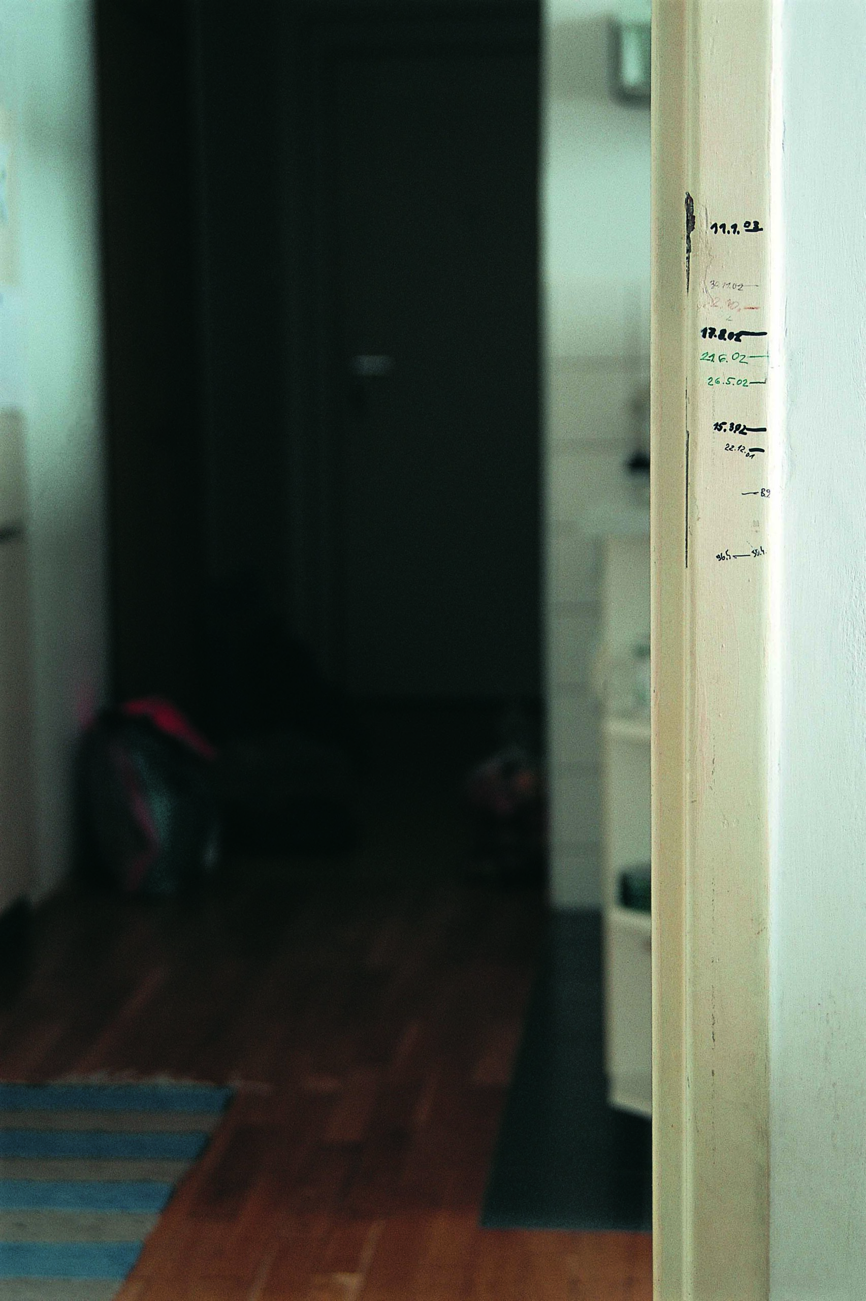 Ondák heeft de groei van zijn zoon gedurende enkele jaren vastgelegd door streepjes te zetten op een deurpost. Door het beeld te vermenigvuldigen bena -
