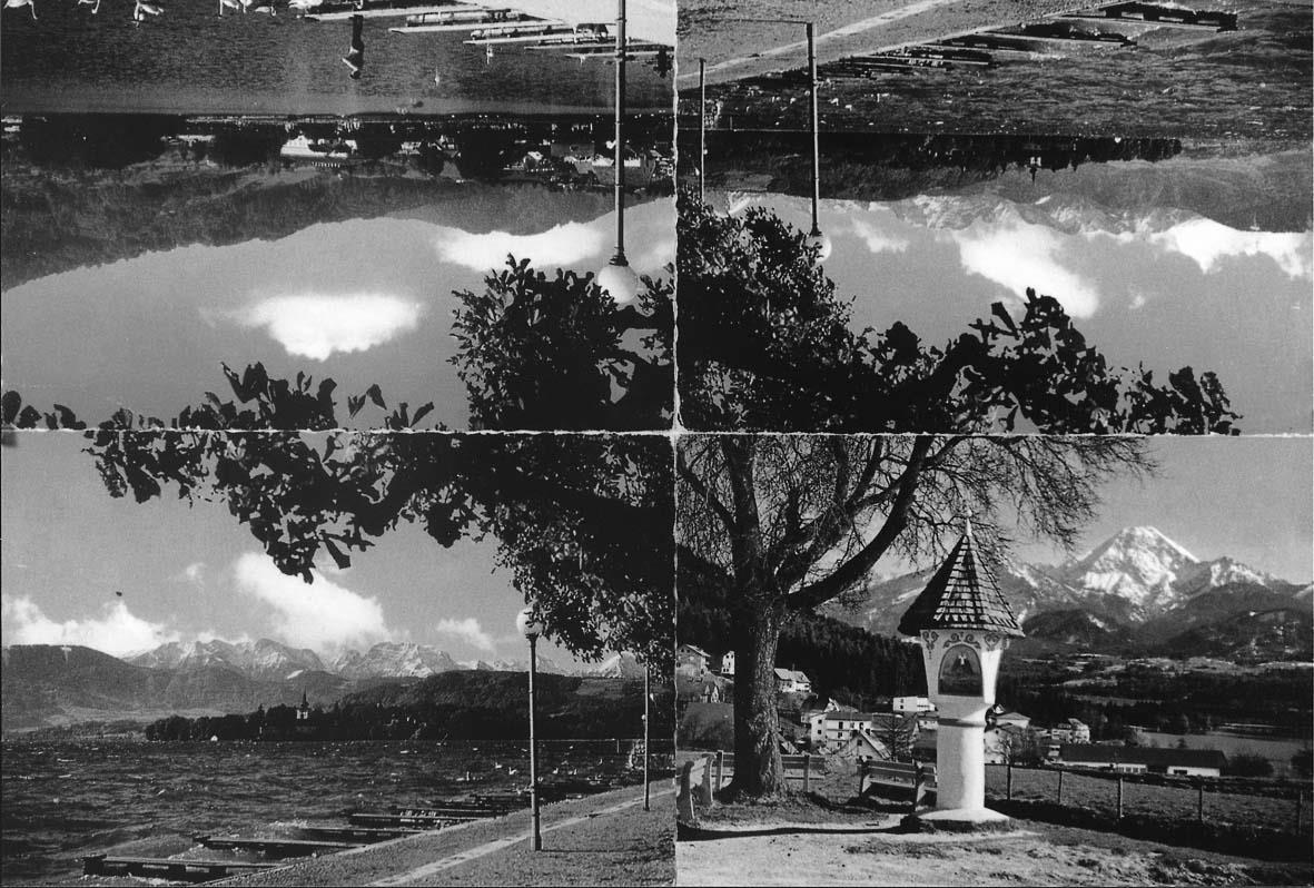 Manipulatie van honderden idyllische ansichtkaarten van Oostenrijkse bergen. -