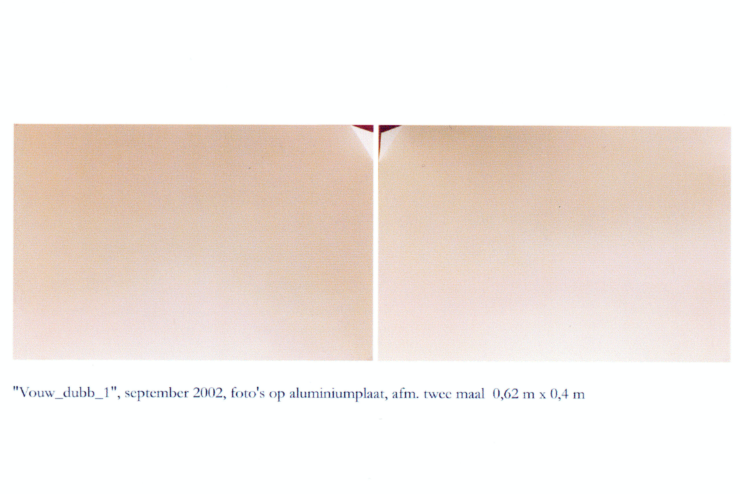 Vouw_dubb_2 betreft twee foto’s. Een wit vel met een omgevouwen hoekpunt vormt de basis van het werk. Als tweeluik tegen een wand geïnstalleerd ontstaat de…