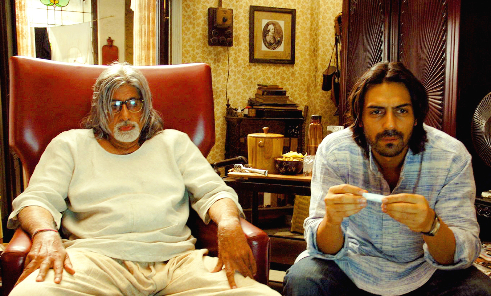 Bollywoodmegaster Amithabh Bachchan speelt een ooit beroemd theateracteur die een grote filmrol aangeboden krijgt. De delicatie driehoeksverhouding tu -